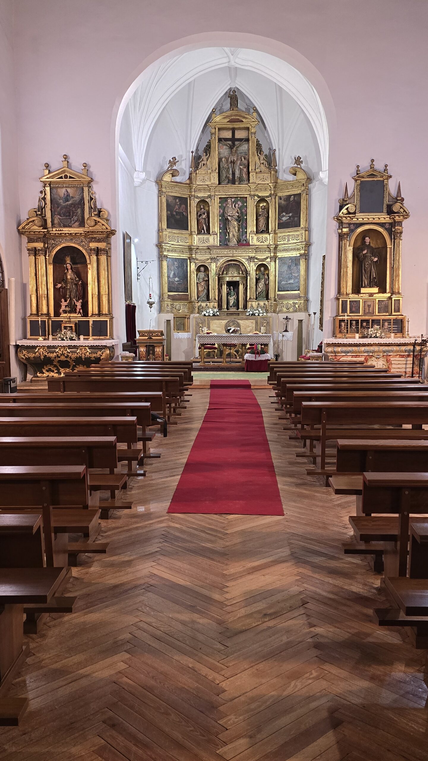 El citado capellán yace sepultado al pie del altar, según reza la inscripción de la losa. Trasladado a esta iglesia desde el derruído convento de Franciscanos, hay otro altar de reliquias, entre las que debe citarse la cabeza del apóstol San Simón, regalo, según cuentan, del arzobispo de Chipre a Carlos V, y traído a este pueblo por conducto de la casa de Malpica. El curato es de entrada.